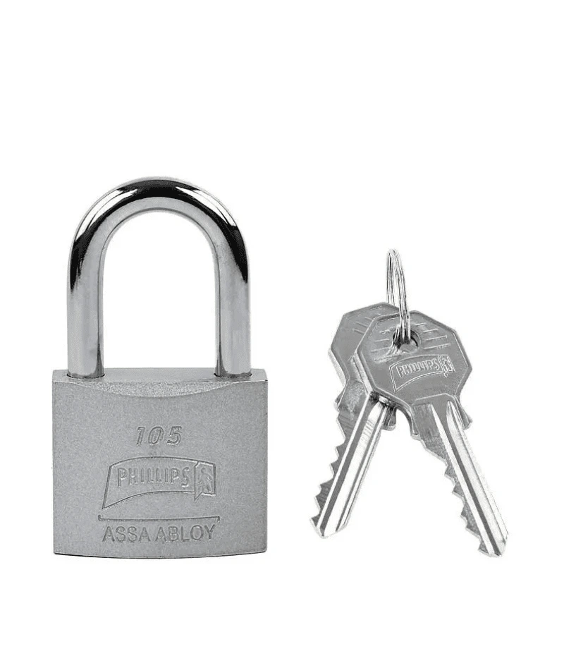 Candado Hierro Phillips 38Mm. Cuerpo, cerrojo y cilindro en hierro.